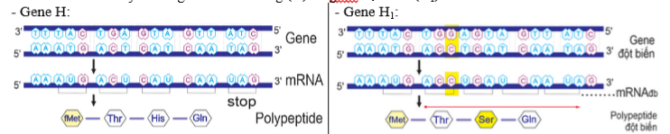 a) Gene H1 là đột biến thay thế 1 cặp nucleotide.